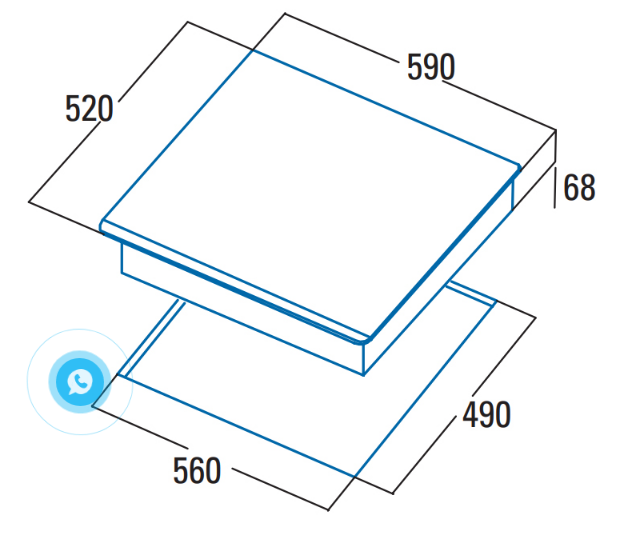 Kích thước khoét đá: R560 x S490 mm