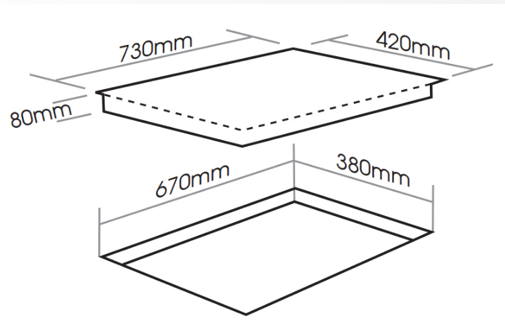 - Kích thước mặt bếp: R730 x S420 x C80 (mm)