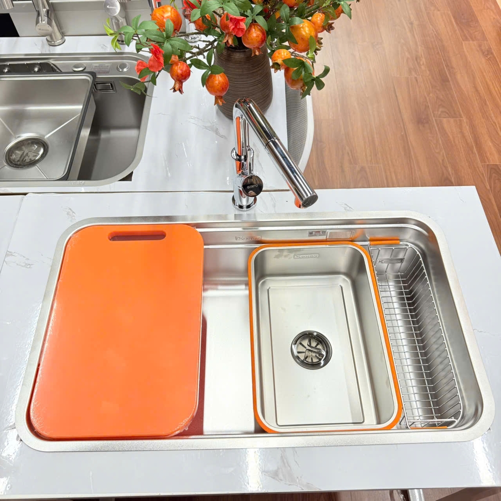 Tari 8047SU là phiên bản nâng cấp với góc lượn R50 bo tròn tinh tế, giúp hạn chế bám bẩn và dễ vệ sinh hơn khi sử dụng hằng ngày. Kích thước chậu được tối ưu cho mọi khoang tủ bếp, phù hợp nhiều không gian từ căn hộ đến nhà phố. Sản phẩm đi kèm 3 phụ kiện được chọn lọc đúng và đủ, đáp ứng trọn vẹn nhu cầu làm bếp, giúp khu vực dọn rửa gọn gàng, tiện lợi và tối ưu công năng.