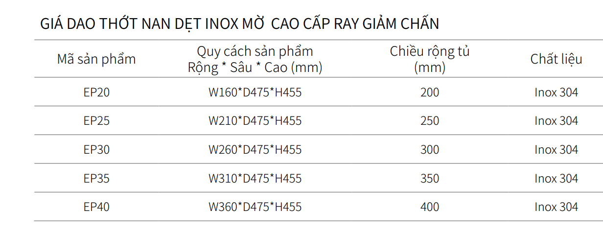 1. Chất liệu inox: Inox 304