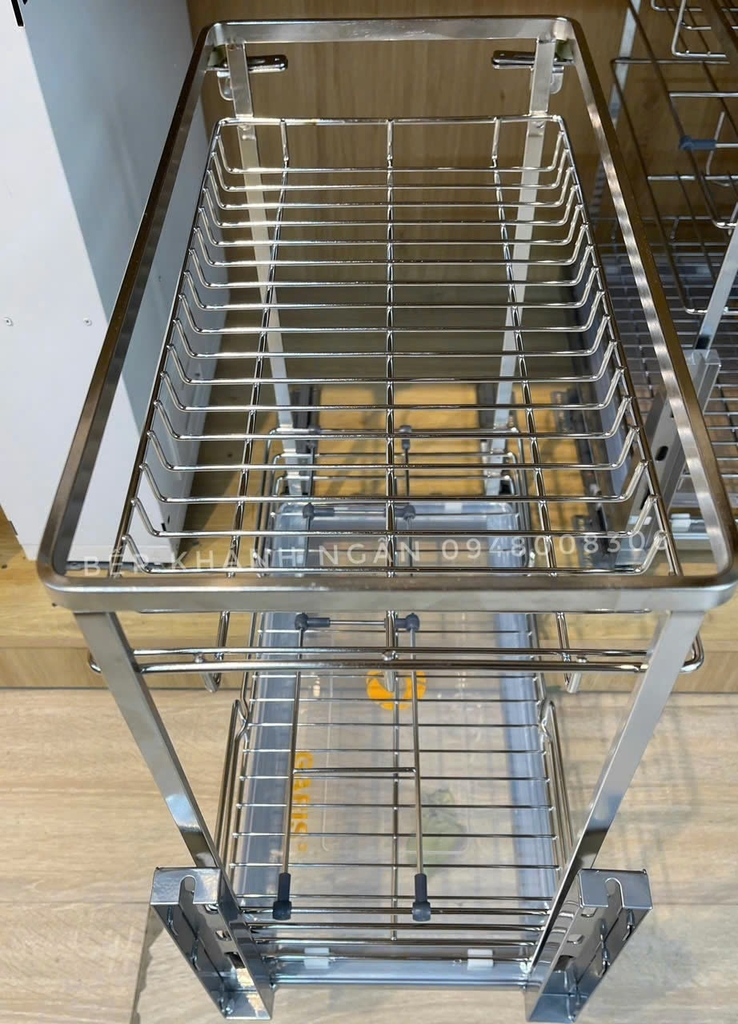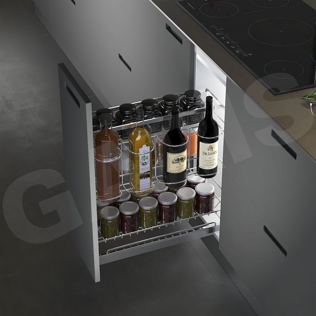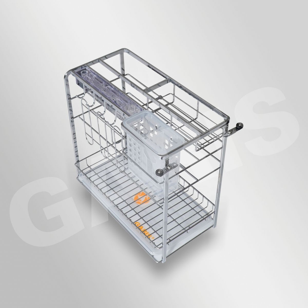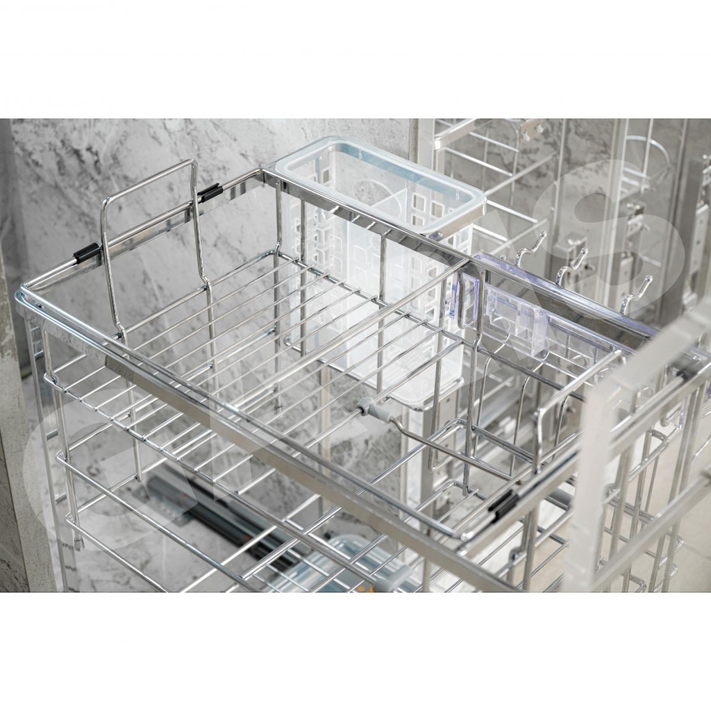 Duy nhất tại Việt Nam có chống rung 2 bên, phụ kiện liên kết rổ và cánh tủ bằng inox 304, rổ phụ để gia vị có thể nhấc ra dễ dàng (GM02.35C, GM02.40C)