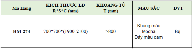 • Kích thước: 700*700*(1900- 2100)