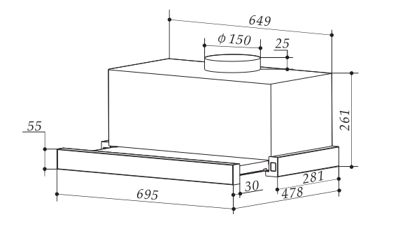 – Điều khiển cảm ứng: kéo ra hút, đẩy vào đóng 2 tốc độ.