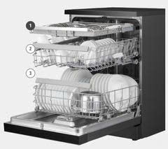 3 giàn rửa linh hoạt: Các khay có thể điều chỉnh chiều cao (Adjustable height), giúp bạn dễ dàng sắp xếp các vật dụng kích thước lớn.