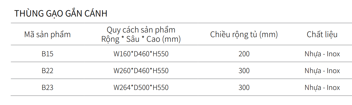 - Một món phụ kiện tủ bếp dưới tiện nghi với Thiết kế gắn cánh gọn gàng, tiện lợi, chỉ cần kéo cánh tủ là toàn bộ thùng gạo Eurogold sẽ đi ra theo giúp bạn dễ dàng lấy gạo mỗi ngày.