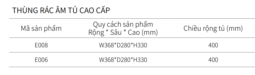 - Thiết kế âm tủ kèm ray giảm chấn vừa đảm bảo thùng nằm gọn gàng trong ngăn tủ vừa dễ dàng kéo thùng ra khi cần dùng.