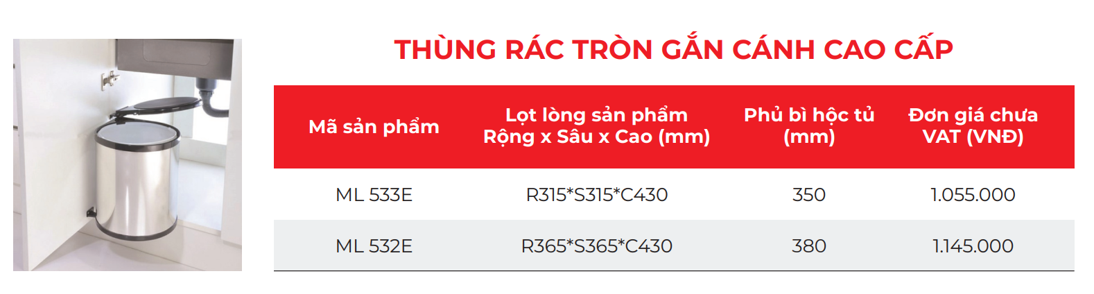 Thùng rác tủ bếp dưới tròn được lắp đặt phía dưới khoang chậu rửa bát giúp việc dọn dẹp sau khi sơ chế tiện lợi hơn rất nhiều. Việc của bạn chỉ là kéo cánh tủ bếp, và thu gom rác vứt và thùng rác, nắp thùng được đậy kín vì vậy bạn hoàn toàn an tâm không gian bếp luôn được thoáng mát sạch sẽ và không có mùi rác khó chịu. Đặc biệt thùng rác có thể tháo ra để vệ sinh rất tiện lợi. Một món phụ kiện tủ bếp dưới rất đáng mua phải không ạ.