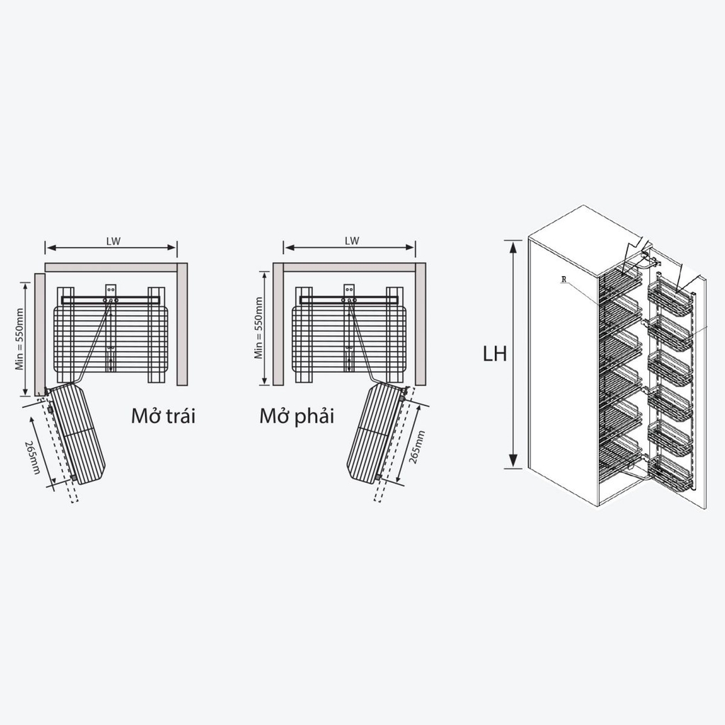 Tải trọng | 60kg (06 rổ bé, 3kg/rổ; 06 rổ to, 7kg/rổ) |
