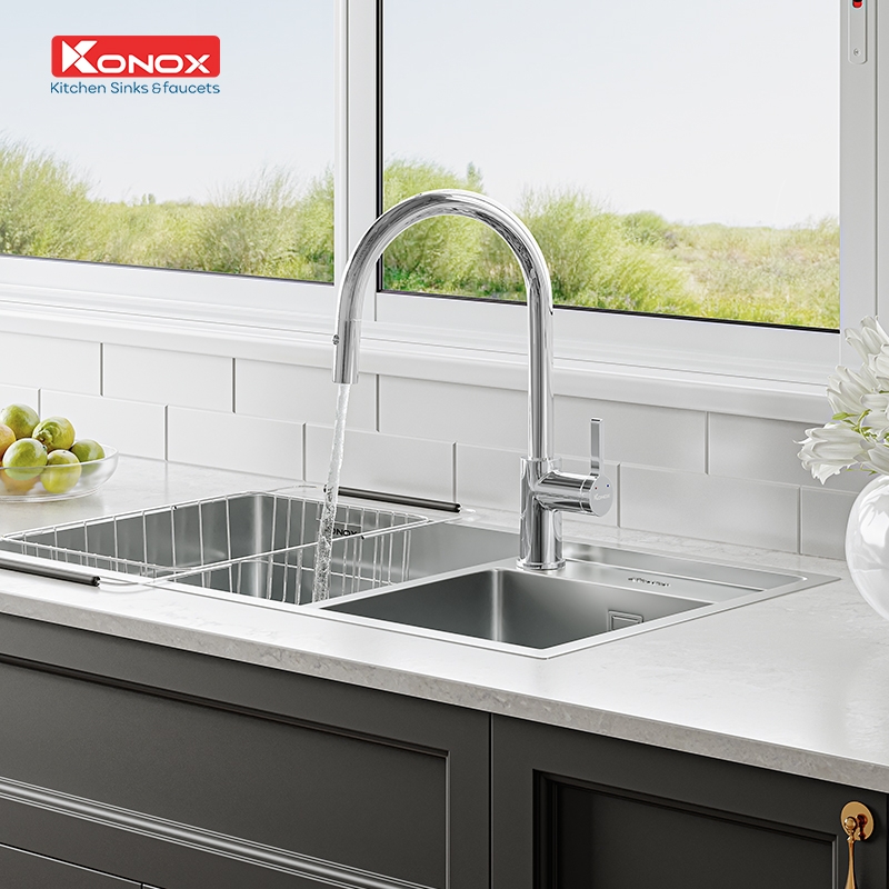 Giới thiệu sản phẩm vòi rửa bát dây rút Konox Alto Chrome